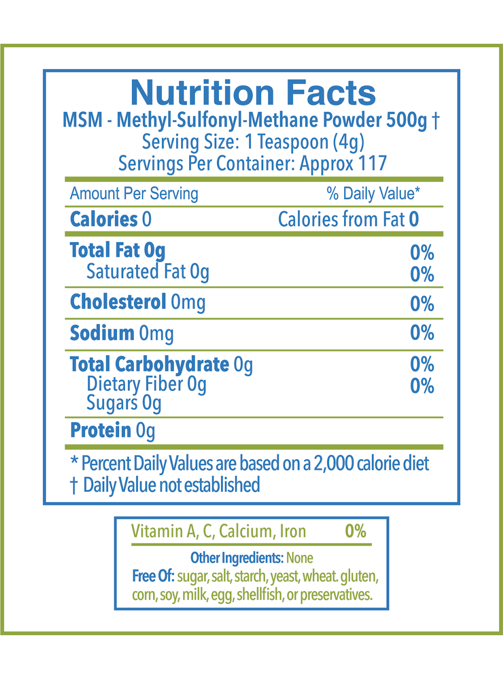 500g - About 117 (1 teaspoon) Servings